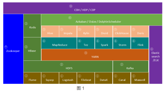 目前大數(shù)據(jù)生態(tài)圈中的核心技術(shù)總結(jié)下來如圖1所示,分為以下9類,下面分別介紹。