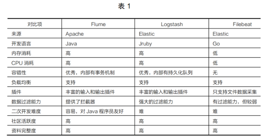 ● Flume、Logstash和FileBeat常用于日志數(shù)據(jù)實時監(jiān)控采集,它們之間的細(xì)節(jié)區(qū)別見表1: