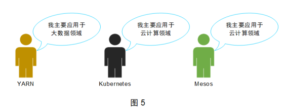 在大數(shù)據(jù)時代到來之前,服務(wù)器資源的變更對應(yīng)的是系統(tǒng)的上線和下線,這些變動是有限的。隨著大數(shù)據(jù)時代的到來,臨時任務(wù)的需求量大增,這些任務(wù)往往需要大量的服務(wù)器資源。如果此時還依賴運(yùn)維人員人工對接服務(wù)器資源的變更,顯然是不現(xiàn)實的。因此,分布式資源管理系統(tǒng)應(yīng)運(yùn)而生,常見的包括YARN、Kubernetes和Mesos,它們的典型應(yīng)用領(lǐng)域如圖5所示。