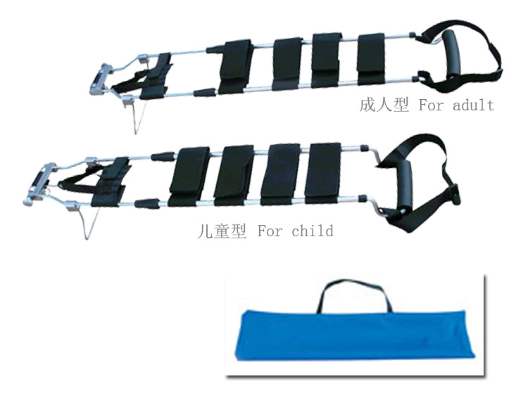 由鋁合金制成,長度可調節(jié),有尼龍綁腿帶子的自動牽引裝置。